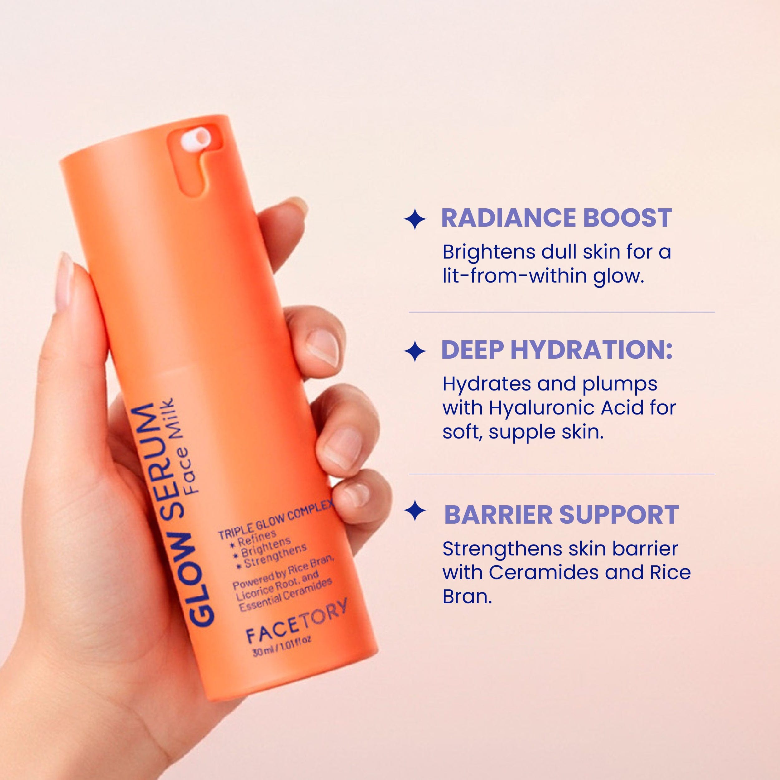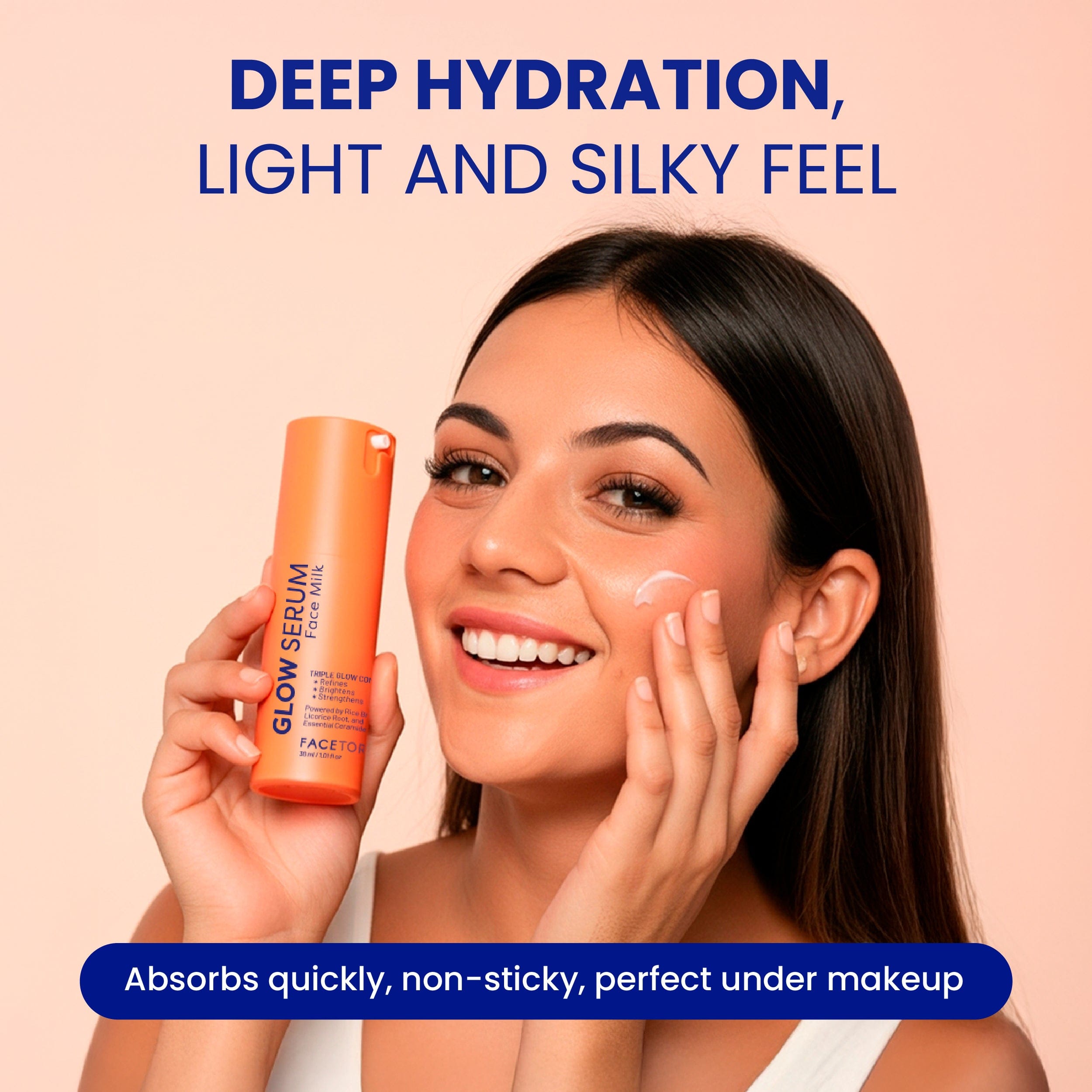 Glow Serum Face Milk is a lightweight, silky Korean skincare serum designed to hydrate, brighten, and smooth for a radiant, dewy finish. The lightweight face milk absorbs quickly without stickiness, making it perfect for layering under moisturizer or makeup.